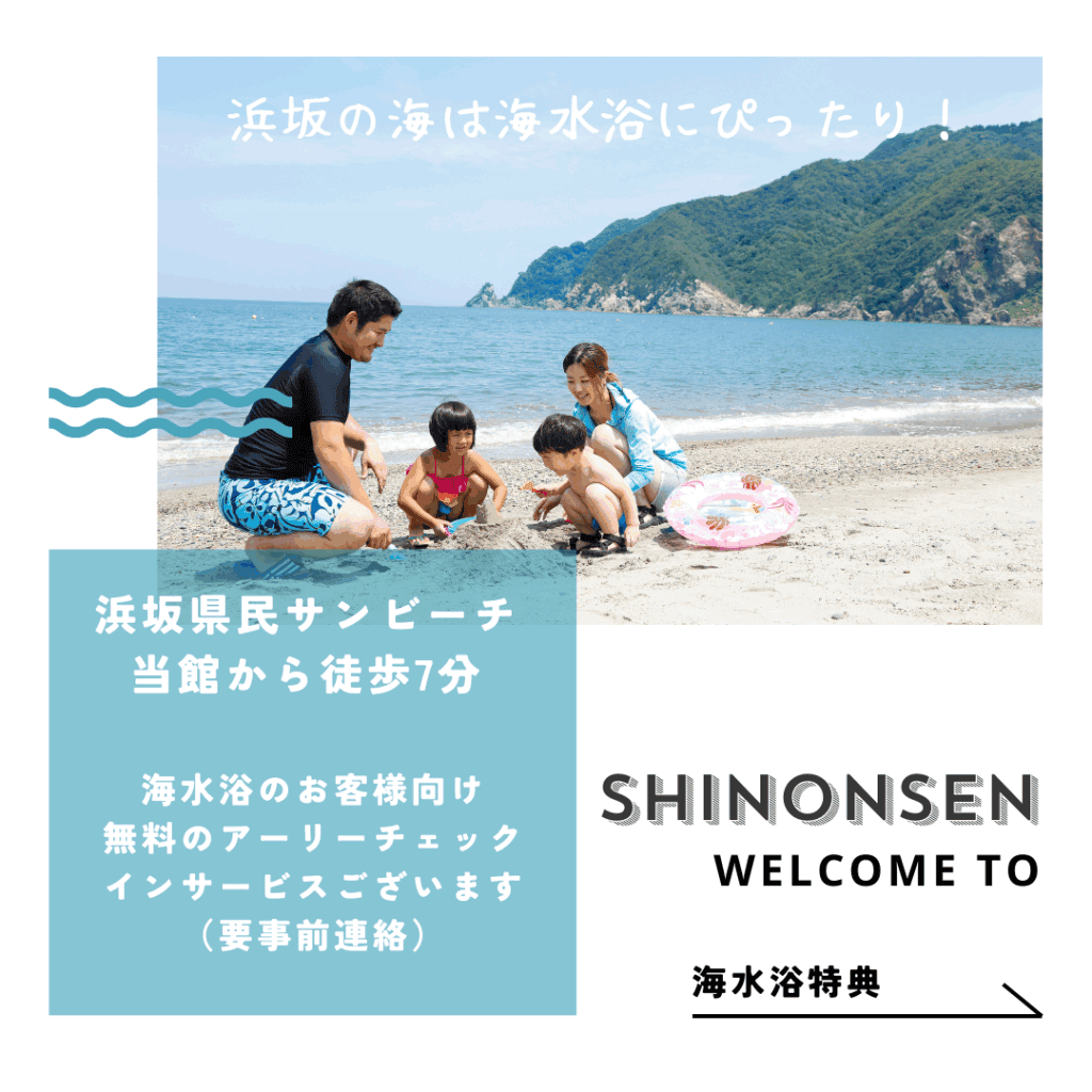 【夏休み満喫!】澄風荘の海水浴特典で新温泉町の夏を満喫!