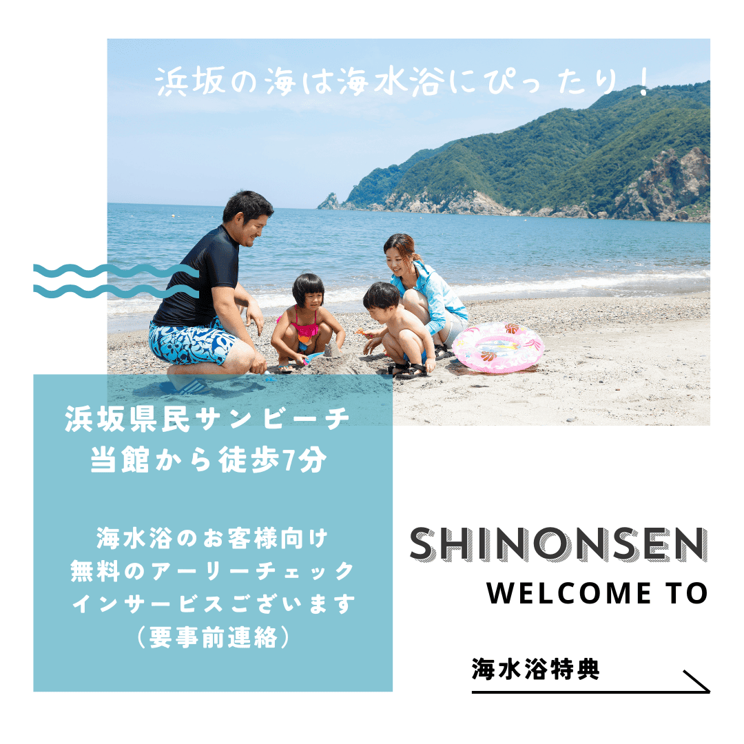 当館では海水浴のお客様にうれしい無料特典をご用意しました!