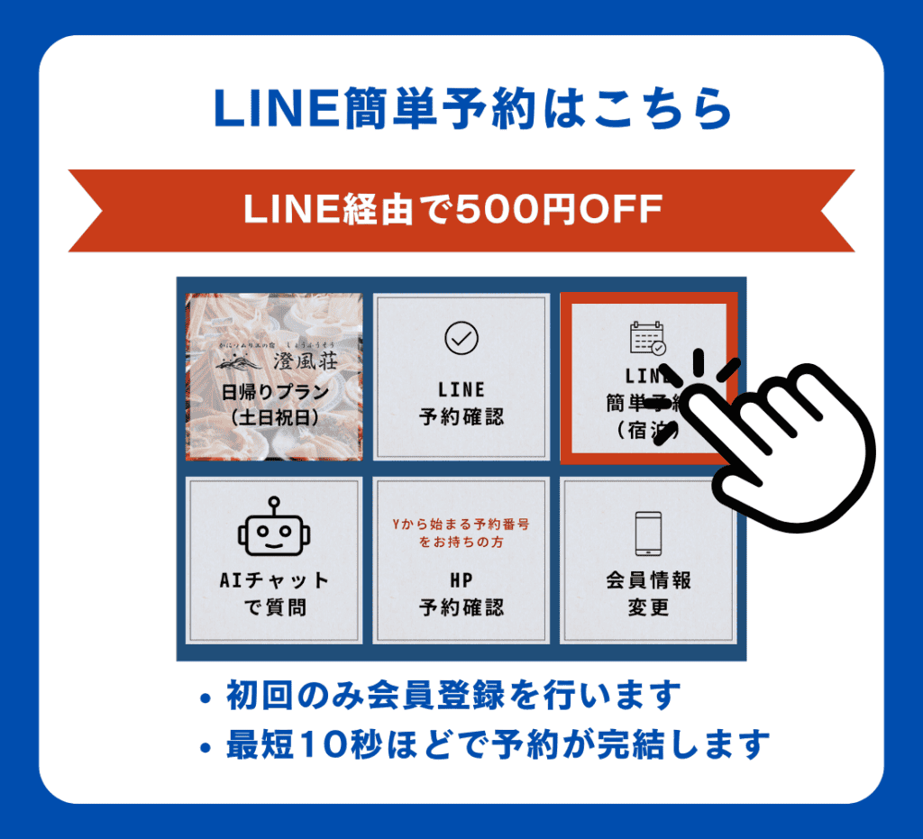 LINE友だち限定でかにプラン(ご宿泊)の500円割引特典もございます。